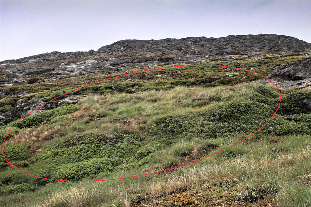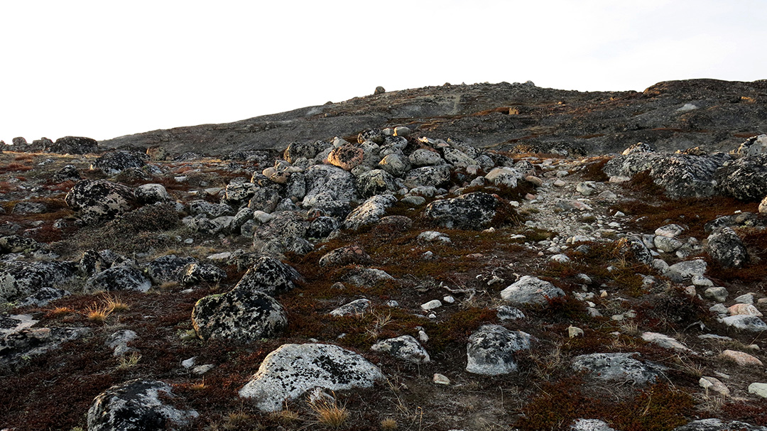 There are many archaeological clues that can be observed as you pass through. Approaching the shoreline, look for a series of small and erratically shaped hills that are covered by dense grasses and moss. These are ruins of houses dating from about 750 to 300 years ago. Sermermiut was an important and vibrant place during these times. By the Early 1700s, it was one of the largest Inuit communities in West Greenland.